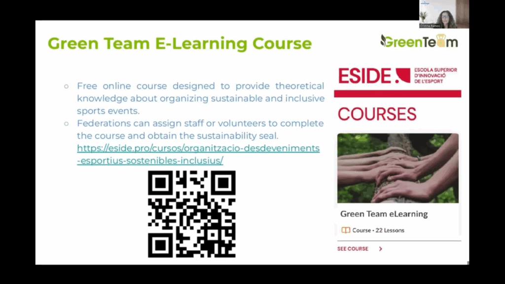 The final conference of the European Green Team project was held on 25 November, bringing together more than a hundred participants online to explore three years of work focused on a central question: how to help federations, clubs, and sports organizations organize more sustainable, inclusive events that align with European climate goals.